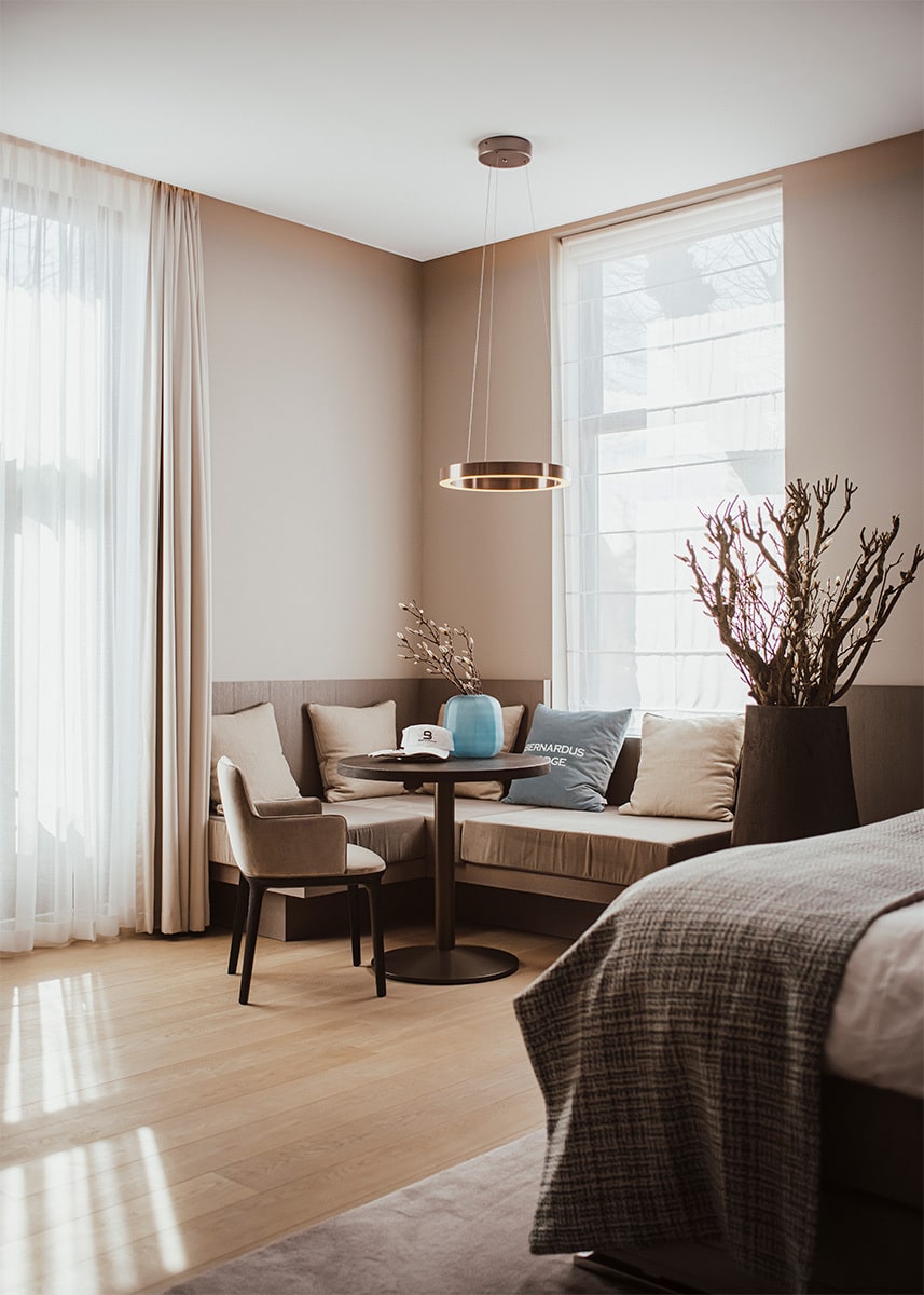 Providing you with all the comfort and amenities you can imagine, Bernardus Lodge is the perfect home base for one or several wonderful days of golf and relaxation. You can also explore the beautiful surroundings of Brabant. Bernardus Lodge has eight cosy and modern double rooms, all fitted with a spacious bathroom. Needless to say, we make sure you don’t miss out on anything during your stay. Guests are welcome to use our heated outdoor swimming pool (open 1 May to 1 October), tennis court, gym, sauna and hammam. It is also possible to book a personal training or relaxing massage.